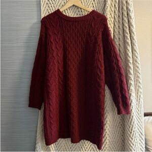 Red Cable Knit Fleece Heavy Long Sleeve Sweater! M Loose Fit