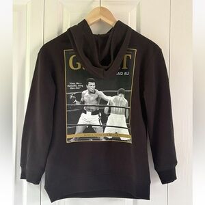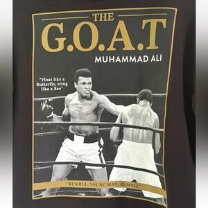 Comfortable black hoodie with bold gold lettering. Features 'The G.O.A.T Muhammad Ali' design. Ideal for casual outings.