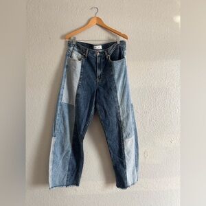 GAP Blue Patchwork High Waisted Barrel Jeans