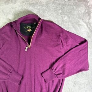 Orvis Mens Large Purple 100% Merino Wool Quarter Zip Pullover Sweater Mock Neck