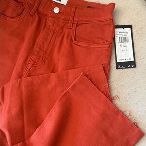 Stylish high rise jeans by Mavi. Vibrant orange color. Perfect for any occasion.