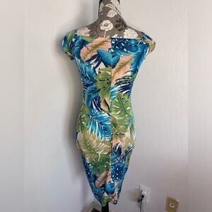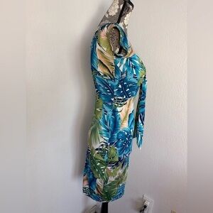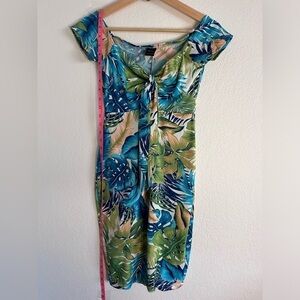 Privy Tropical Floral Print with Tie Front Body Con dress in blues & greens-XS