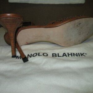 This listing is for Manolo Blahnik Brown Open Toe Heels Women's Size 37.5 Good used condition Please refer to all photos for more details as they are the best part of the description. Photos are of the actual item that you will receive.