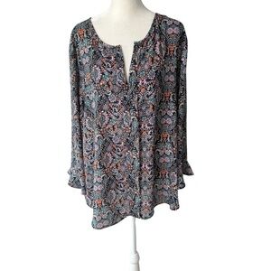 This Van Heusen blouse showcases a relaxed fit with a , crafted in a blend of blue and red hues. The long sleeves and airy fabric offer a comfortable and stylish look, perfect for any occasion.