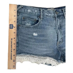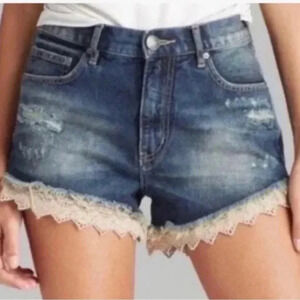 Free People High-Rise Lace Crocheted Trim Denim Shorts Size 27 Inch Waist