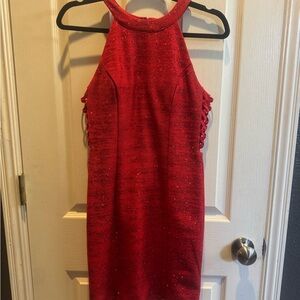 Dazzle in this shimmering red dress. Features a chic halter neckline and elegant design. Ideal for special occasions. Only worn once.