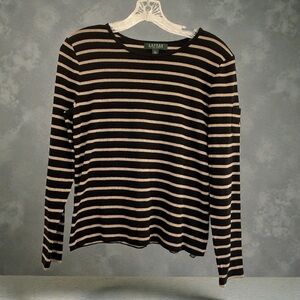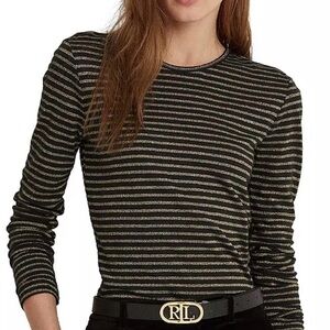 Lauren Ralph Lauren Petite Large Black & Gold Metallic Stripe Top