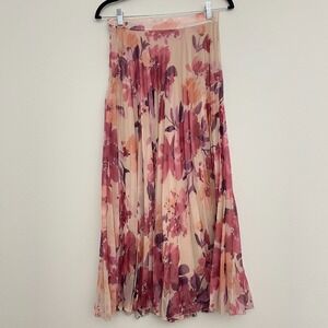 Zara Skirt Women M Pink Floral Pleated Midi A Line Cottagecore Romantic Femme