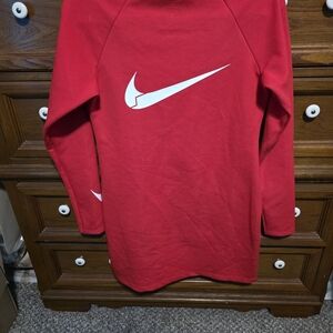 Red long sleeve dress with a white Nike logo on the sleeve. Stylish and comfortable.
