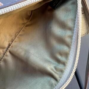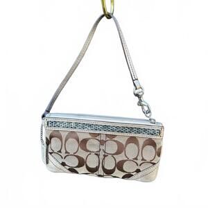 COACH Vintage Y2K Tan Brown Logo Canvas Beaded Mini Bag Wristlet Gold Trim