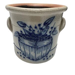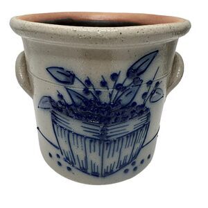 1992 Salmon Falls Blue Decorated Stoneware Blue Berries Basket CrockWare Pottery