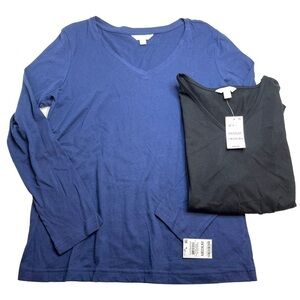 Charter Club Intimates V-Neck Long Sleeve Pajama Tops Navy & Black Bundle Medium