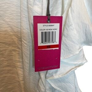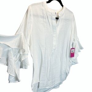 Vince Camuto Pintuck Detail Flutter Sleeve Rumple Satin Blouse White XS New