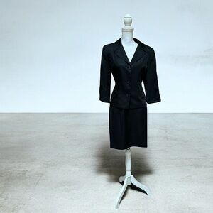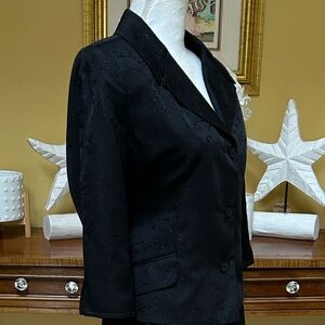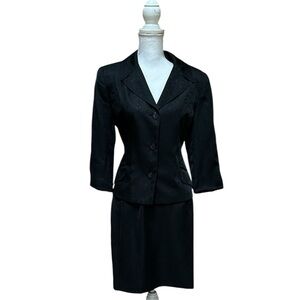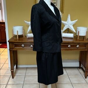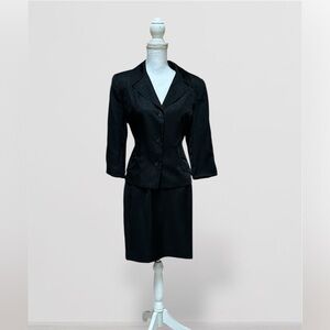 Women’s Vtg 90’s Y2K Office Girl Formal Black Floral Embroidered 2 PC Skirt Set