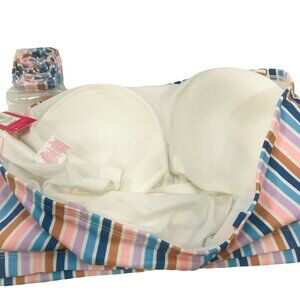 Xhilaration Women's Size 24W Metallic Thread Longline Bandeau Swim Top Striped Multicolor New With Tags