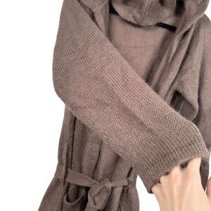 TWIGGY Vintage 90s Mohair Longline Duster Hooded Belted Cardigan Size XL