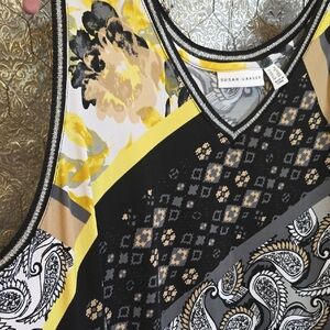 Susan Graver Black and Yellow Patterned Maxi Dress Stunner For Spring Summer 1X