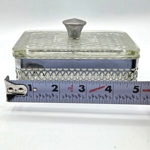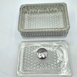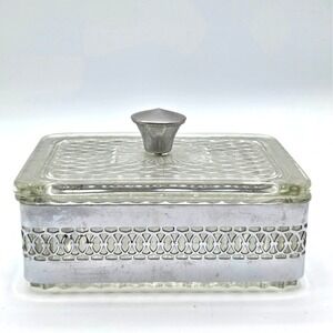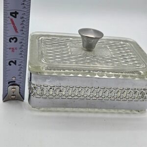 SQUARE Filigree Metal & Glass Trinket-Jewelry Box With Glass Lid Casket Vintage
