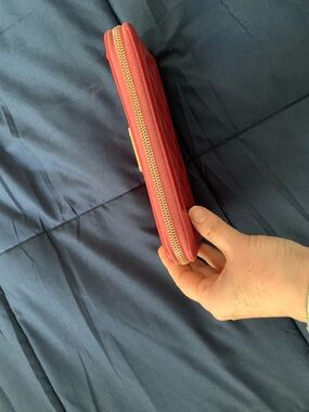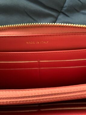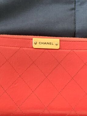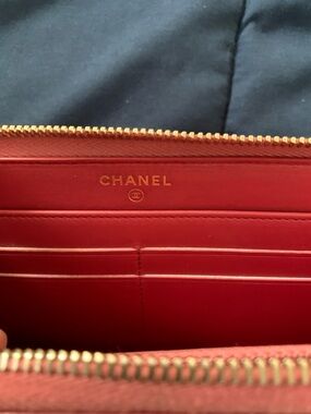 Beautiful authentic Chanel pink quilted leather wallet featuring gold-tone hardware and a zip-around closure. The front is accented with a gold CHANEL logo plate for a chic, timeless look. Interior includes multiple card slots, bill compartments, and a zip coin pocket — perfect for organizing essentials in style.