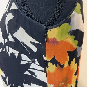 Adrianna Papell Vibrant Black and Floral Silk Midi Dress Size 4 Petite