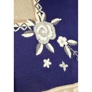 Vintage Cottage Core Sweater, Blue with Handcrafted appliqué