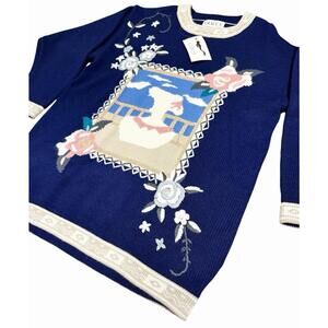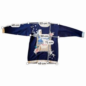 Crafted for those who appreciate the charm of a bygone era, this Vintage Giacca Sweater is a delightful nod to classic style with a cottagecore twist. The relaxed fit and long sleeves make it an ideal choice for anyone seeking comfort and elegance. Its unique blue hue is accented with embroidered details and a gemstone touch, adding a whimsical flair to your casual wardrobe.