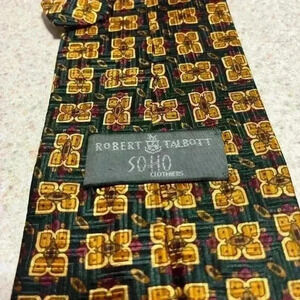 Robert Talbott Silk Necktie Green/Gold Square Print Handsewn
