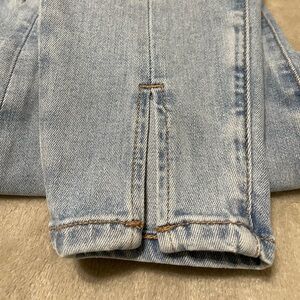 Length is X-SHORT. Snug fit with a light wash. Ideal for everyday comfort. It is stretch denim with a front seam and ankle slits in the front as well.