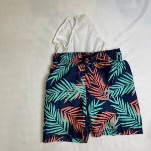 Old Navy Boys 3T Swim Trunks Blue Coral Aqua Tropical Leaf Pattern