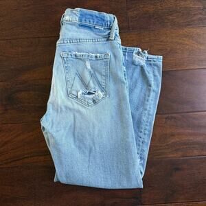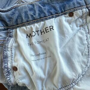 MOTHER jeans, The Tomcat, Superior denim, distressed jeans, straight leg jeans, high rise jeans, rigid denim, vintage denim, light wash jeans, 90s style, model off duty, cool girl style, effortless, streetwear, minimalist, classic,