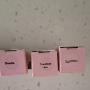 Vibrant liquid eyeshadow set by ColourPop. Features Bliss, Glaze, Morpho, Sweetzer Ash, beetle, and Supernova.