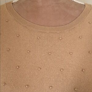 Ann Taylor Beige Short Sleeve Sweater with Textured Dots 79% cotton