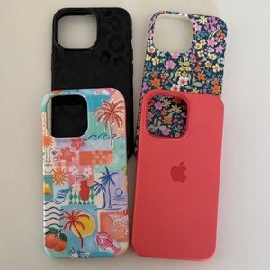 Stylish Apple iPhone cases in black, red, and vibrant multicolor patterns. Enhance your phone's look with these unique designs.