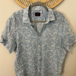 Stylish blue and white patterned shirt by UNTUCKit. Ideal for casual outings. Comfortable and trendy. Good condition smoke free home.