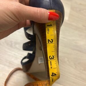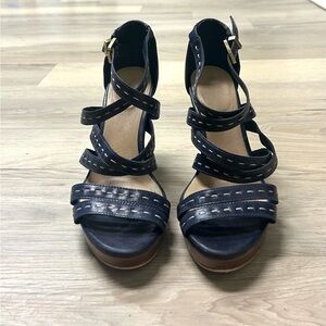 UGG Sandals Platform Strappy Navy Blue Leather Women Sz 8.5 High Heel Open toe