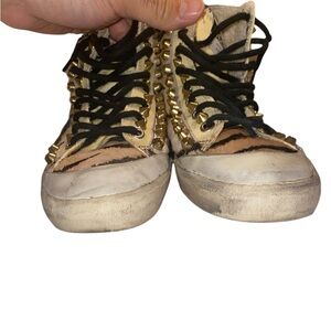 Distressed pony hair high top sneakers. Super cool look. In great used condition.