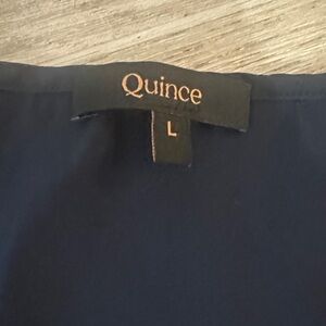 Sleek navy Quince washable silk tank with a V-neck design. Ideal for versatile styling. Size large.