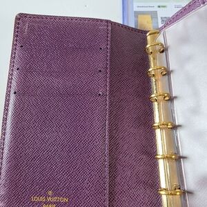 Compact ring planner featuring snap closure, card slots, and gold-tone hardware.
