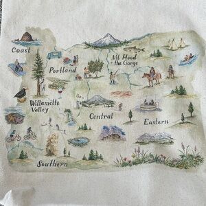 Used only once. 100% cotton tote bag with illustrated map of the state of Oregon.
