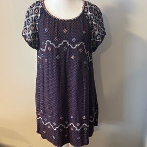 Free People In The Clouds Embroidered Short Sleeve Tunic Dress. Size Medium