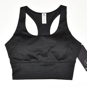 90 Degree by Reflex Longline Sports Bra. Size S. NEW with tag attached. Black with black leopard. Racerback strap style. Scoop neck. Removable bust padding, included.