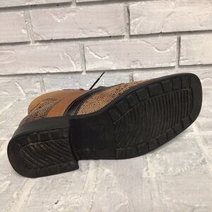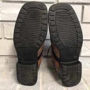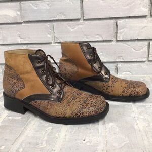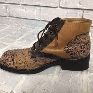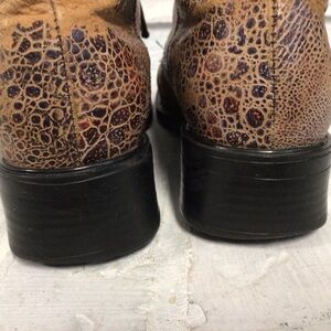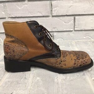 Stylish leather boots by Nycole St. Louis. In shades of brown and black these boots are sure to draw attention with their unique pattern.