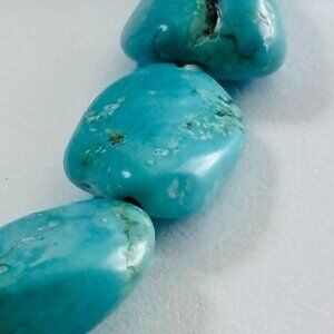 Turquoise Nugget Stone Bead Bracelet Silver Tone Clasp