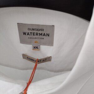 Brand new with tags Quiksilver Waterman button-up featuring a clean white base with subtle Tahiti palm print. Designed with anti-wrinkle fabric, making it perfect for travel, resort wear, beach vacations, cruises, or elevated casual styling. Lightweight, breathable, and polished with a modern coastal vibe.