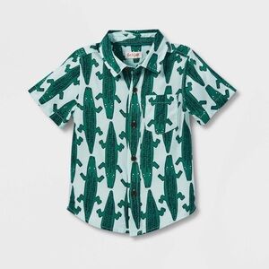 Cat & Jack Baby Boys' Alligator Challis Short Sleeve Button Down Shirt 18 M