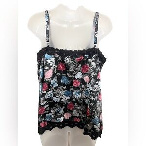 Y2K Torrid 2X Lace Satin Cami Tank Dark Floral Romantic Going Out Grunge