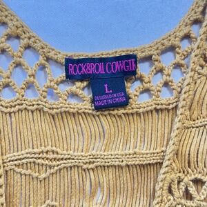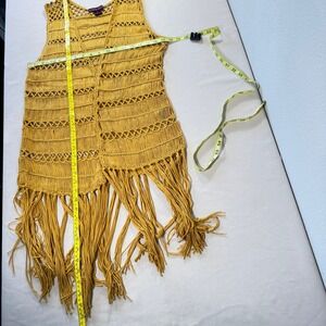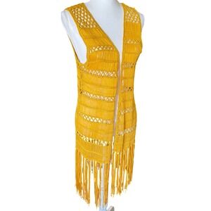 Rock & Roll Cowgirl Mustard Yellow Macrame Fringe Vest Longline Boho Women's L