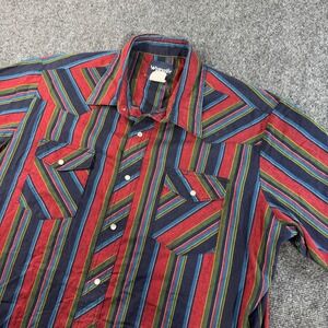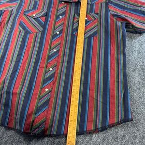 VTG Wrangler Western Shirt Mens XL Short Sleeve Pearl Snap Red Navy Green Stripe