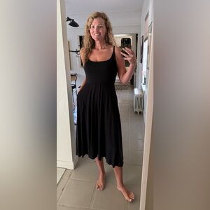 Quince $78 Black Midi Tencel Jersey Fit and Flare Dress with Pockets, Size M