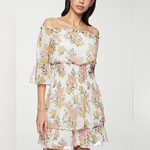 Chic off-shoulder design with floral print. Perfect for sunny days.